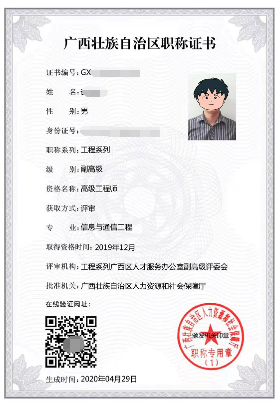 6、證書領(lǐng)取時間: 廣西各地市職改辦在網(wǎng)上公示職稱評審結(jié)果1個月后。